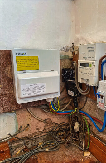 Replacement of outdated or unsafe metre panels, repair of exposed wiring, damaged enclosures, missing protective components, and incorrect circuit labelling.